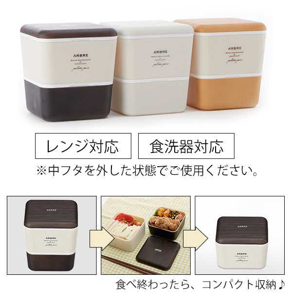 ランチボックス 2段 Arbre アルブル 通販 弁当箱 ランチケース お弁当 ランチ 電子レンジ対応 食洗機ok レディース 女の子 女子 高校生 中学生 かわいい おしゃれ 日本製 ナチュラル 木目調 北欧 モダン 遠足 ピクニック スクエア 正方形 入れ子式 コンパクト 正和